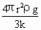 雨滴下落时受两个力作用:重力,方向向下;空气阻力,方向向上.当雨滴达到终极速度vT后,加速度为零,二力平衡,用m表示雨滴质量,有 mg-krvT=0, ① m= ② 由式①②得终极速度vT= 代入数值得vT=1.2m/s. |