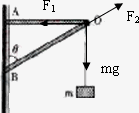 m的物体悬挂在轻质的支架上,斜梁OB与竖直方向的夹角为A.F1=mgsin![]()