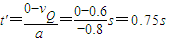 因为Q在摩擦力作用下做匀减速直线运动,取速度为正方向,故加速度a=-0.8m/s2