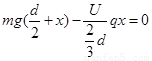 ,设第二种情况粒子下降到距上板x处,由动能定理: