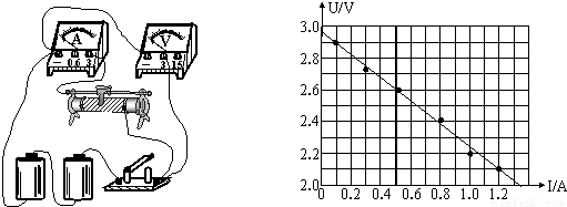 (2)将各点用直线连接起来,应让尽量多的点分布在直线上,误差较大的要舍去;由图可知,电源的电动势约为2.96~2.98V;由图可知,当电压为2.6V时,电流为0.5A;则