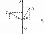 y方向上:T1sinα+T2sinβ=G 代入数据得T1=50 N,T2=503 N. |