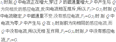 如图(a)所示,圆形线圈P静止在水平桌面上,其正上方悬挂一相同线圈Q,P和Q共轴,Q中通有变化电流,电流随时间变化的规律如图(b)所示,P所受的重力为G,桌面对P的支持力为FN,则