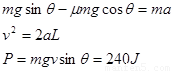 质量m=10kg的物体,在倾角θ=37º,长L=8.0m的斜面顶端由静止开始滑下,物体与斜面间摩擦系数为μ=0.625。(sin37º=0.6 cos37º=0.8