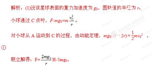(2) H=2.0m时,F=8N,代人上式解得 g0=4.8m/s2。