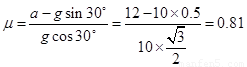 一质量m=0.5kg的滑块以一定的初速度冲上一倾角为30º足够长的斜面,某同学利用DIS实验系统测出了滑块冲上斜面过程中多个时刻的瞬时速度,如图所示为通过计算机绘制出的滑块上滑过程的v-t图。求:(g取10m/s2)