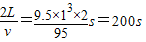 解答:解:(1)列车初速度v=342km/h=95m/s,停住时v=0