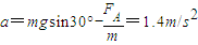 运动方向的合外力为:F=mgsinθ-FA