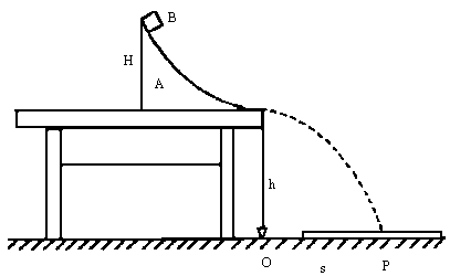 (1)斜面高度H,桌面到地面的高度h,O到P的距离s,小铁块B的质量m. (2)①用天平测出B的质量m;②如图所示安装实验器材,地面铺白纸、复写纸并用胶带粘牢;③用手按住斜面A,让B从某一斜面顶端由静止滑下,记录落地点P1;④重复③步骤五次,找到平均落地位置P;⑤用直尺测图中标明的H、h、s;⑥实验结束整理仪器归位. (3)Wf=mgH- |