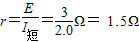 B、由图象Ⅰ可知,电源电动势E=3.0V,短路电流I短=2.0A,电源内阻