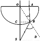 解:作出光路图如图所示,OBD为法线,则sin∠ABO=