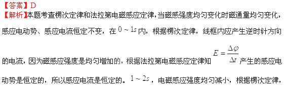 矩形导线框abcd固定在匀强磁场中,磁感线的方向与导线框所在平面垂直,规定磁场的正方向垂直低面向里,磁感应强度B随时间变化的规律如图所示.若规定顺时针方向为感应电流I的正方向,下列各图中正确的是( )