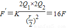 真空中两个点电荷的相互作用力为F,若每个电荷的带电量都增大一倍,并把它们之间的距离减少一半,则它们之间的作用力变为( )