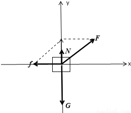 解答:解:物体受四个力:重力G,竖直向下;拉力F,斜向右上方;支持力N,竖直向上;摩擦力f,水平向左.