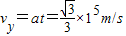 则有:vy=at (3)