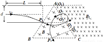 (2)带电微粒进入中间三角形区域后,要垂直打在AC边上,则该区域的磁感应强度B1是
