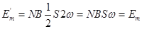 交流发电机在工作时电动势为e=Emsin ωt,若将发电机的转速提高一倍,同时将电枢所围面积减小一半,其他条件不变,则其电动势变为( )。