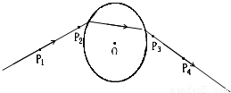 【答案】分析:(1)连接P1、P2表示入射光线,连接P3、P4表示出射光线,连接两光线与玻璃砖的交点,即为折射光线.