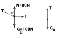 如图, 绳CO与竖直方向成30°角, O为一定滑轮, 物体A与B用跨过定滑轮的细绳连接, B的重力为100N, 地面对B的支持力为80N.则: (1)物体A的重力为______N
