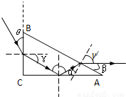 则射出光线与AB面的夹角 β=90°-γ′=30°