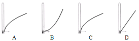 如图所示,蜡块在装着水的玻璃管中匀速上浮的同时,随着玻璃管向右水平运动。A、B两图表示的是随着玻璃管向右水平匀速运动及其运动轨迹,C、D两图表示的是随着玻璃管向右水平匀加速运动及其运动轨迹,则正确的是 ( )