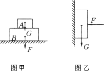 答案:重力是由于地球的吸引而使物体受到的力,而压力属于弹力,压力是此物体施加给别的物体的力,两个力的性质不同,作用在不同的物体上,所以不能说重力就是压力.在某些情况下,压力的大小可以等于重力的大小,但决不可以说这个力就是那个力.如一铁块所受重力与一头羊的重力相等,但不能说铁块就是羊.在图甲中,A物体静止于B物体上时,A物体重力为G,A物体的重力在数值上等于对B物体的压力,而在图乙中,物体A受力F作用紧贴在竖直墙上,处于静止状态,物体A对墙的压力在数值上等于压力F,而不等于重力G,且压力与重力无关.故重力就是压力的说法不对.