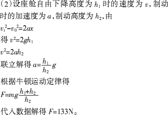76 m高的地方,让座舱自由落下,当落到离地面28 m时制动系统开始启动,座舱匀减速运动到地面时刚好停止.若某人手中托着质量为5 kg的铅球进行这个游戏,问:(1)当座舱落到离地面高度为40 m的位置时,铅球对手的作用力多大;