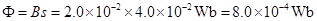 的匀强磁场中,当线圈平面与磁场方向垂直时,穿过线圈的磁通量是( )