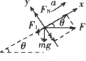 物块的加速度沿斜面向上,垂直斜面方向的加速度为零,在此两方向建立直角坐标系,再用正交分解法处理力的关系,用牛顿第二定律的分量式列方程求解即可,具体步骤如下: (1)选定研究对象:物块; (2)作受力分析,画出受力示意图:将研究对象受到的力全部分析出来,研究对象施予其他物体的力和各力的分力不分析; (3)建立直角坐标系:研究对象一般作质点处理,坐标原点选在质点所在位置,坐标轴建在加速度方向上和垂直加速度的方向上,通常让加速度方向沿着坐标轴正方向; (4)将有关力进行正交分解; (5)利用牛顿第二定律分量式列出方程; (6)求解联立方程,最后结果有时需要讨论. |