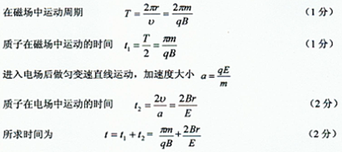 【小题2】若质子沿x轴正方向射入磁场,求质子从O点进入磁场到第二次离开磁场经历的时间。