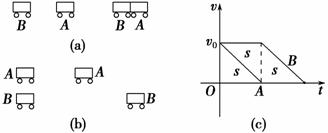 (单选)(思维转化法:将“不同地点出发”转化为“同一地点出发”)两辆完全相同的汽车A、B,沿平直的公路一前一后匀速行驶,速度均为v0.若前车A突然以恒定的加速度刹车,在它刚停住后,后车B以前车A刹车时的加速度开始刹车.已知前车A刹车过程中所行驶的距离为s,若要保证两辆车在上述过程中不相撞,则两车在匀速行驶时保持的距离至少应为 ( ).