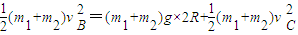 【答案】分析:当两物体的组合体恰能运动到C时,此时重力提供了向心力,可求出物体运动到C点的速度,再由机械能守恒求出在B的速度,在B的碰撞,动量守恒.