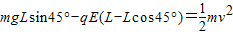(2)根据前面的分析可知,当摆线与水平方向成45°角之时,也就是系统处于合场的“势能”最低的位置之时,也就是系统的动能处于最大的状态之时.此处,也就是摆球的速度处于最大的位置之处.