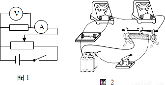 20k¦¸£¬µçÁ÷±íÄÚ×èÊÇ10¦¸£¬´ý²âµç×è×èֵԼΪ200¦¸£¬Ïà¶ÔÀ´Ëµµçѹ±íÄÚ×èÔ¶´óÓÚ´ý²âµç×è×èÖµ£¬Òò´ËµçÁ÷±íÓ¦²ÉÓÃÍâ½Ó·¨£¬ÊµÑéµç·ͼÈçͼ1Ëùʾ£»¸ù¾ÝʵÑéµç·ͼÁ¬½ÓʵÎïµç·ͼ£¬ÊµÎïµç·ͼÈçͼ2Ëùʾ£®