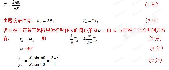 求:a、b两粒子经Y轴时距原点O的距离之比。