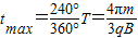 带电粒子从ab边射出磁场,当速度为vmax时,运动时间最短.