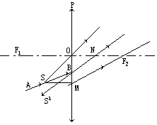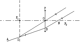 [方法一]如图所示,设点光源S位于AB上,过S作平行于主光轴的直线SM交凸透镜于M;连接