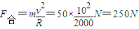 【答案】分析:乘客在拐弯过程中靠重力和火车给他的作用力的合力提供向心力,根据牛顿第二定律求出合力的大小,再根据平行四边形定则求出火车给人的作用力.