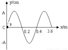 某波源 P 的振动图象如图所示,已知该波在某种介质中传播速度为 v=2m/s,从图中计时时刻开始,画出 t=0.3s 时刻,该波源向外传播的波形图(至少一个波长),并在图中标注出 P 点位置.