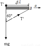 水平方向:T′sin60°=ma,