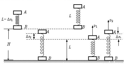 (1)第二次释放A、B后,A上升至弹簧恢复原长时的速度υ1;