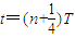 解答:解:若波向右传播,时间t=0.25s与周期的关系为