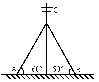 如图所示,为使电杆稳定,在杆上加了两根拉线CA和CB,若每根拉线的拉力都是300 N,两根拉线间的夹角为60°角.求拉线拉力的合力大小和方向.