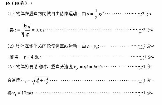 (3)物体落地时的速度大小