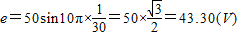 瞬时表达式:e=Emsinωt=50sin10πt(V)