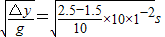 解答:解:(1)在竖直方向上△y=gT2,T=