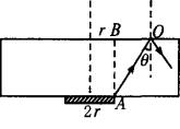 解析:如图所示,A为发光面右边缘,由A发出的光线射向O点恰好发生全反射,入射角q刚好为玻璃的临界角.在O点外侧玻璃的上表面不再有折射光线,B点为A在玻璃正上方的对应点,那么r+BO为玻璃上表面透光面圆的最大半径.由临界角公式:sinq=
