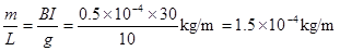 赤道上的地磁场可以看成沿南北方向的匀强磁场,磁感应强度的大小是0.5×10-4T。如果赤道上有一根沿东西方向的直导线,长为20m,载有从西向东的电流30A。取g=10m/s2,求: