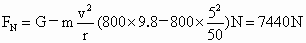 汽车所受支持力 根据牛顿第三定律得,汽车对桥顶的压力大小也是 7440N.(2)根据题意,当汽车对桥顶没有压力时,即