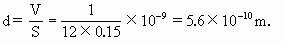 将1mL的油酸溶于酒精,制成200mL的油酸酒精溶液.已知1mL溶液有60滴,取1滴这样的油酸酒精溶液滴到水面上,随着酒精溶于水,最终在水面上形成了面积为0.15m2的油膜,试由此估算油酸分子的直径.
